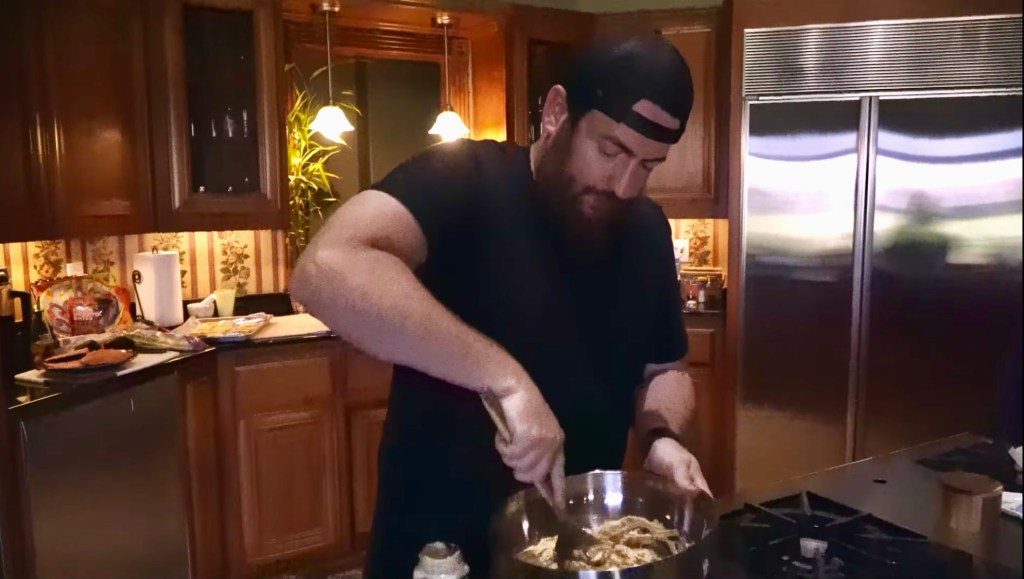 Add flaked meat into the dip mixture, and stir.